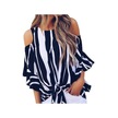 Kadın Gömlek Yuvarlak Yaka Askısız Bol Dikey Çizgili Günlük Üst Lacivert