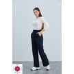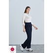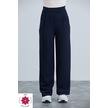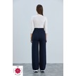 Kadın Gri Cırt Cırtlı Kapama Rahat Palazzo Likralı Esnek Beli Lastikli Pantolon Yüksek Bel Lacivert