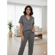 Kadın Gri Düğme Detaylı Pijama Takımı Gri
