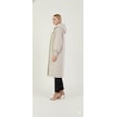 Kadın Gri Kapüşonlu Balon Kol Fermuarlı Kaban Oversize Midi Boy Kışlık Kaşe Mont Taş