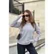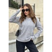 Kadın Gri Yumuşak Dokulu Düğmeli Triko Kazak, Uzun Kol, Regular Kesim, Standart Boy. Gri