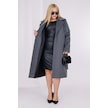 Kadın Gri Yün Kaşe Kemer Ve Astar Detay Büyük Beden Kaban Gri