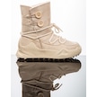 Kadın Günlük Nubuk Deri Kar Bot Bootie Postal İçi Kürklü Düğmeli Ve Bağcıklı Kaymaz Taban 501 Bej