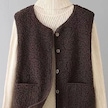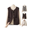 Kadın Güz Kış Yelek Ceket Düz Renk V Boyun Kolsuz Düğme Kapatma V Boyun Yumuşak Sıcak Cepler Hırka Bayan Yelek Haki