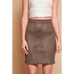 Kadın Hafif Likralı Süet Kumaş Yüksek Bel Diz Üstü Kalem Etek-haki Haki