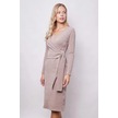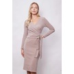 Kadın Hafif Likralı Triko Kruvaze Anvelop Bağcıklı Uzun Kol Diz Altı Uzun Elbise-bej Bej