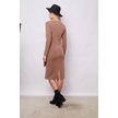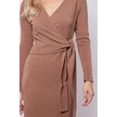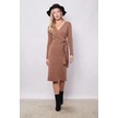 Kadın Hafif Likralı Triko Kruvaze Anvelop Bağcıklı Uzun Kol Diz Altı Uzun Elbise-camel Camel
