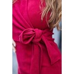 Kadın Hafif Likralı Triko Kruvaze Anvelop Bağcıklı Uzun Kol Diz Altı Uzun Elbise-şarap Şarap
