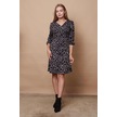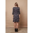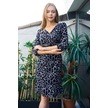 Kadın Hafif Likralı Yumuşak Dokulu Kumaş V Yaka Önü Düğümlü Eteği Volanlı Uzun Kol Diz Boy Elbise-lacivert Desen Lacivert D.