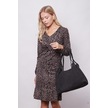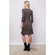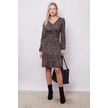 Kadın Hafif Likralı Yumuşak Dokulu Kumaş V Yaka Önü Düğümlü Eteği Volanlı Uzun Kol Diz Boy Elbise-leopar Leopar