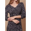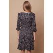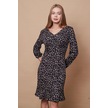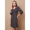 Kadın Hafif Likralı Yumuşak Dokulu Kumaş V Yaka Önü Düğümlü Eteği Volanlı Uzun Kol Diz Boy Elbise-siyah Bej Konfeti Konfeti