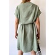 Kadın Haki Kısa Kol, Kalp Yaka, Dokulu Desen, Bele Oturan, Aerobin Lastikli Bel Midi Elbise Haki