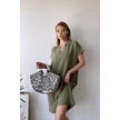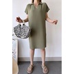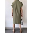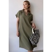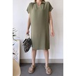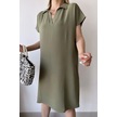 Kadın Haki Kısa Kol, Polo Yaka, Dokulu Desen, Basic Kalıp/kesim, Aerobin Rahat Midi Elbise Haki