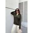 Kadın Haki Polo Yaka Basic Bluz, Uzun Kol, Regular Kesim, Günlük Ve Spor Kaliteli Kumaş Sweatshirt Yeşil