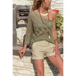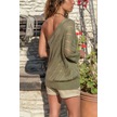 Kadın Haki Tek Omzu Açık Triko Bluz-Haki