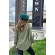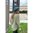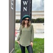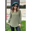 Kadın Haki Uzun Truvakar Kol, Öpücük Yaka, Basic Kesim Bluz - Tesettüre Uygun Haki