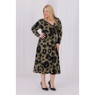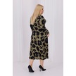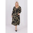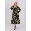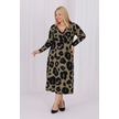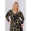 Kadın Haki Yeşil Leopar Desen Kruvaze Yaka Büyük Beden Esnek Maxi Elbise Haki