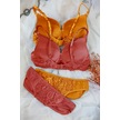Kadın Hardal Ve Kiremit Rengi Dolgulu Balenli Sütyen Külot 2'li Paket Çok Renkli