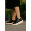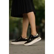 Kadın İnce Şerit Detaylı Kalın Taban Spor Ayakkabı Siyah