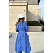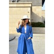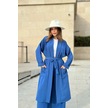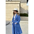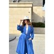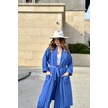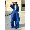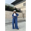 Kadın İndigo Çift Cepli Uzun Kimono & Bol Paça Pantolon - Salaş Alt & Üst Takım Indigo