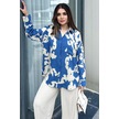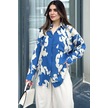 Kadın İndigo Uzun Kol, Arkası Pliseli, Salaş Dökümlü, Viskon Gömlek Indigo