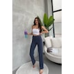 Kadın İndigo Yüksek Bel Fitilli Bol Paça Günlük İnce Eşofman Altı İndigo