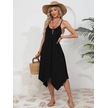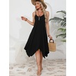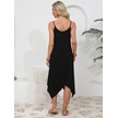 Kadın Ip Askılı Yuvarlak Yakalı Asimetrik Kesim Viskon Elbise Siyah