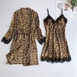 Kadın İpek Pijama Takımı Saten Gecelik Kadın Setleri V Yaka Kahverengi