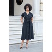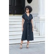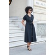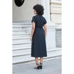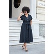 Kadın İpeksi Modal Kumaş Yakalı Düşük Omuzlu Apoletli Yan Cepli Kemerli Diz Altı Boy Uzun Elbise-siyah Siyah