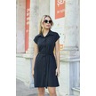 Kadın İpeksi Modal Kumaş Yakalı Düşük Omuzlu Diz Altı Kuşaklı Düğmeli Elbise-siyah Siyah