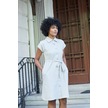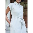 Kadın İpeksi Modal Kumaş Yakalı Düşük Omuzlu Diz Altı Kuşaklı Düğmeli Elbise-taş Taş