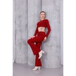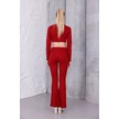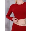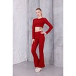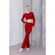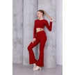 Kadın İspanyol Paça Pantolon Uzun Kollu Parmak Geçirmeli Crop Takım Bordo