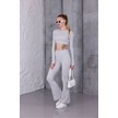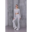 Kadın İspanyol Paça Pantolon Uzun Kollu Parmak Geçirmeli Crop Takım Gri