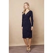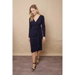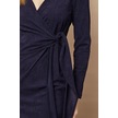 Kadın Kadife Kumaş Kruvaze Anvelop Bağcıklı Uzun Kol Diz Altı Elbise-lacivert Lacivert