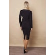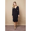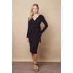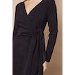 Kadın Kadife Kumaş Kruvaze Anvelop Bağcıklı Uzun Kol Diz Altı Elbise-siyah Siyah