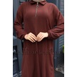 Kadın Kahve Aerobin Uzun Önü Yarım Fermuarlı İkili Takım T1218 Kahve Kahverengi