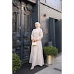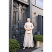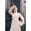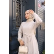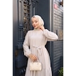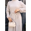 Kadın Kahve Küçük Kareli Kat Kat Kuşaklı Uzun Gofre Kumaş Tesettür Elbise 0220 Kahve