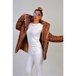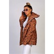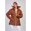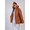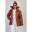 Kadın Kahverengi Dik Yaka Su Geçirmez Yazılı Uzun Şişme Mont