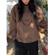 Kadın Kahverengi Moment Baskılı Oversize Sweatshirt Kahverengi