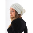 Kadın Kalın Ekru Örgü Ponponlu Bere Ekru