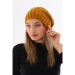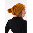 Kadın Kalın Hardal Örgü Ponponlu Bere Hardal