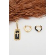 Kadın Kararmaz Mineli Kalp Detaylı Zirkon Küpe Set Altın-M