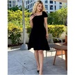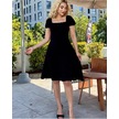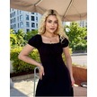 Kadın Kare Yaka Arkası Gipeli Önden Bağlamalı Kısa Ayrobin Elbise Siyah