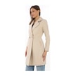 Kadın Kaşe Kaban Siyah Yünlü Dokuma, Kruvaze Yaka, Astarlı, Cepli, Kuşaklı Uzun Boy Tesettür Uyuml Bej