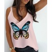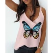 Kadın Kelebek Baskılı Sandy Kumaş Askılı Bluz Pudra
