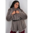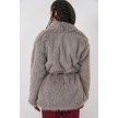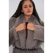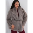 Kadın Kemerli Oversize Kürklü Kaban 9156 - Füme Füme