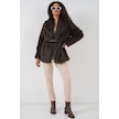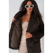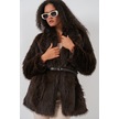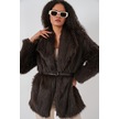 Kadın Kemerli Oversize Kürklü Kaban 9156 - Kahverengi Kahverengi