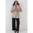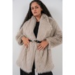 Kadın Kemerli Oversize Kürklü Kaban 9156 - Taş Taş