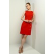 Kadın Kendinden Telalı Yan Düğmeli Kısa Elbise-40797 Kırmızı