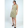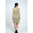 Beli Büzgülü V Yaka Keten Elbise Haki